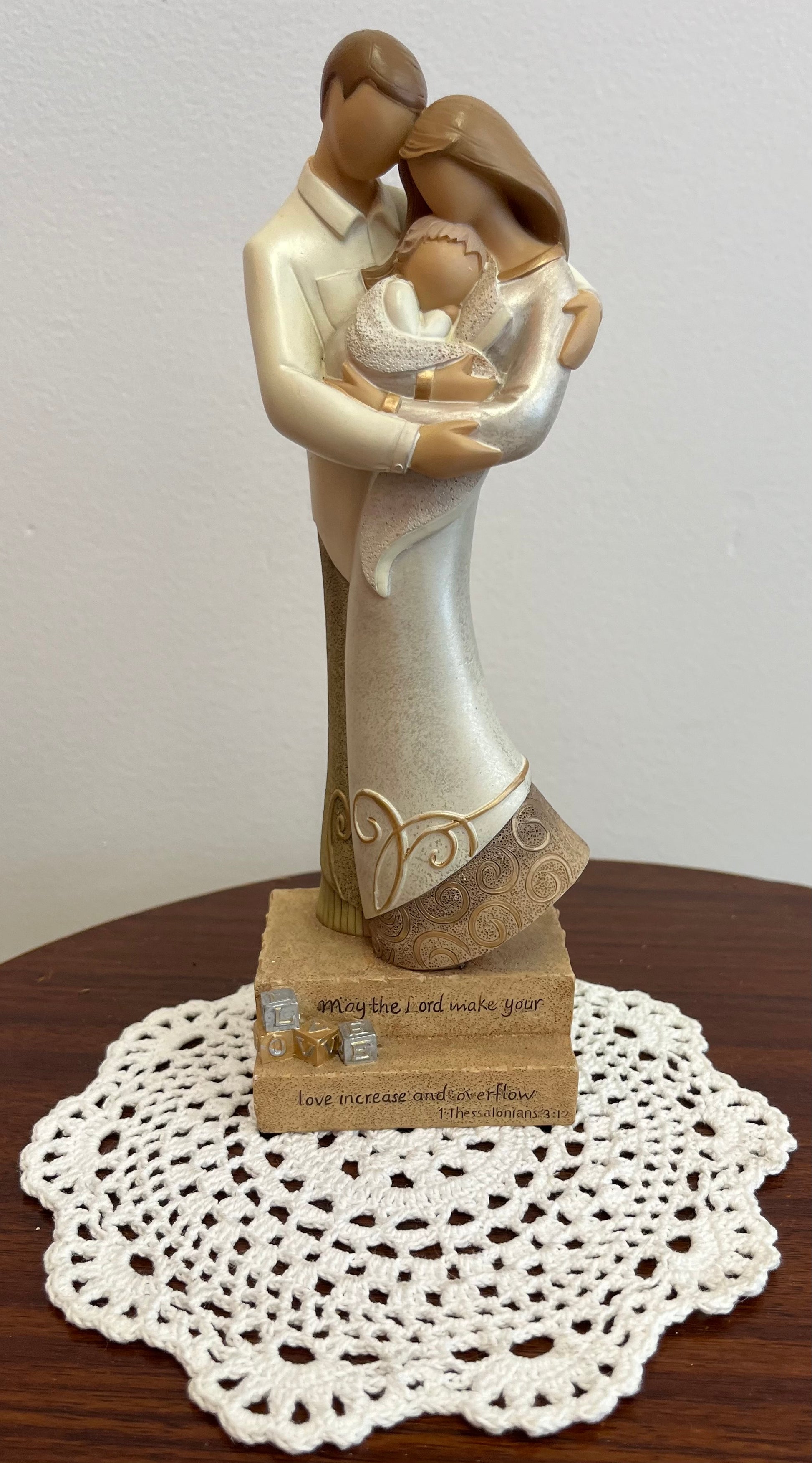 New family figurine. “May the Lord make your love increase and overflow” - 1 Thessalonians 3:12